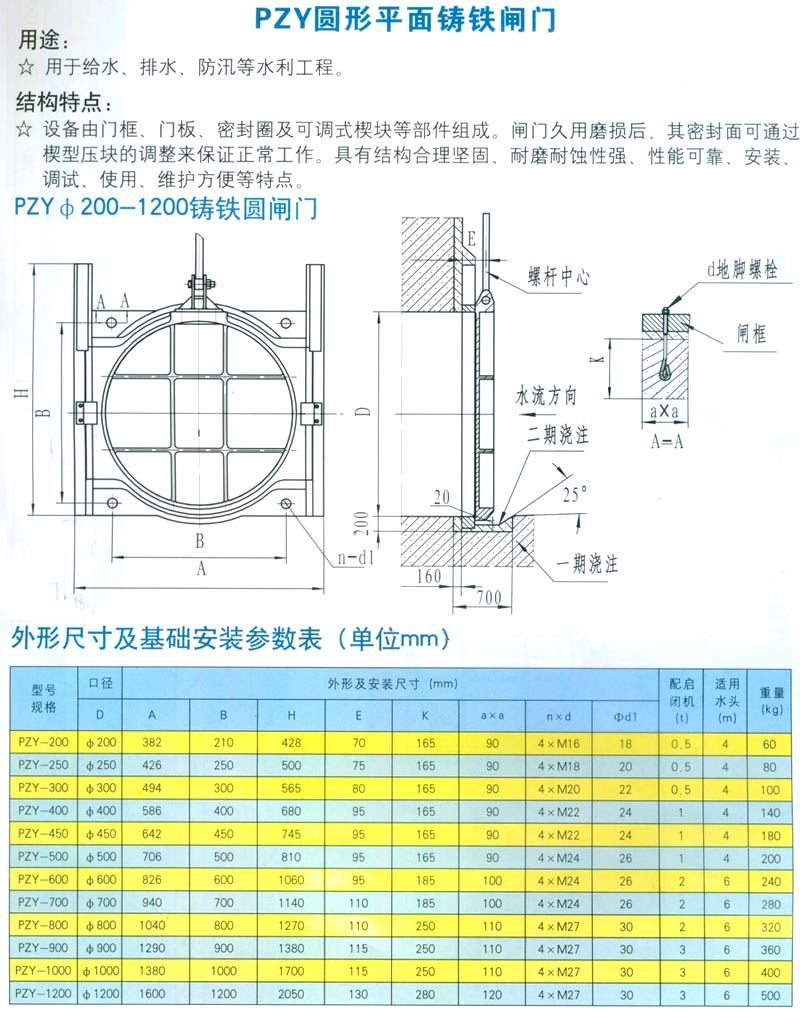 PZY圆形平面铸铁闸门