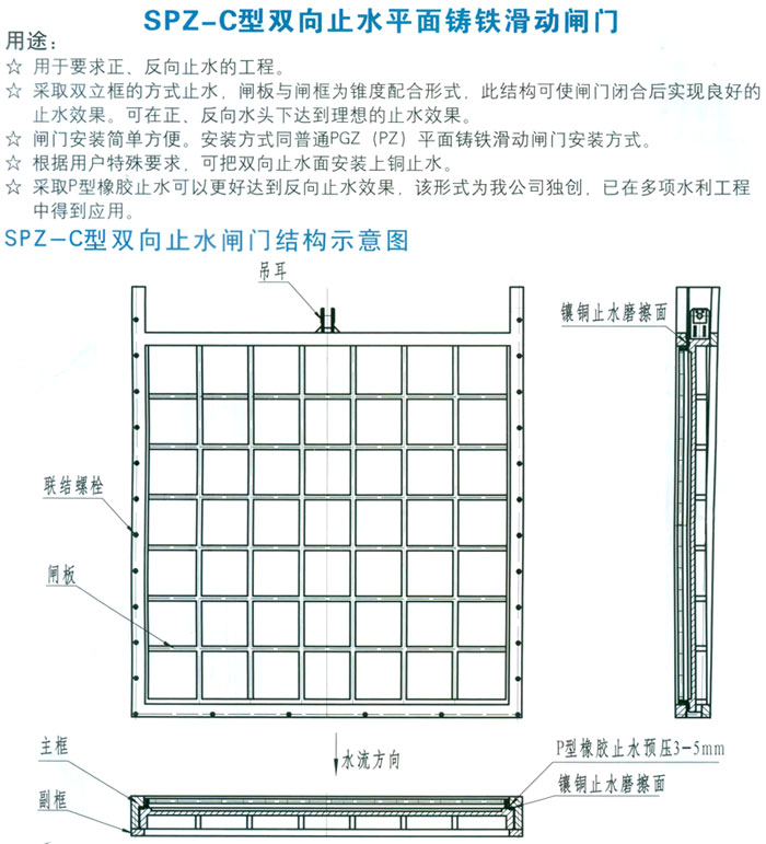 SPZ-C型双向止水平面铸铁滑动闸门